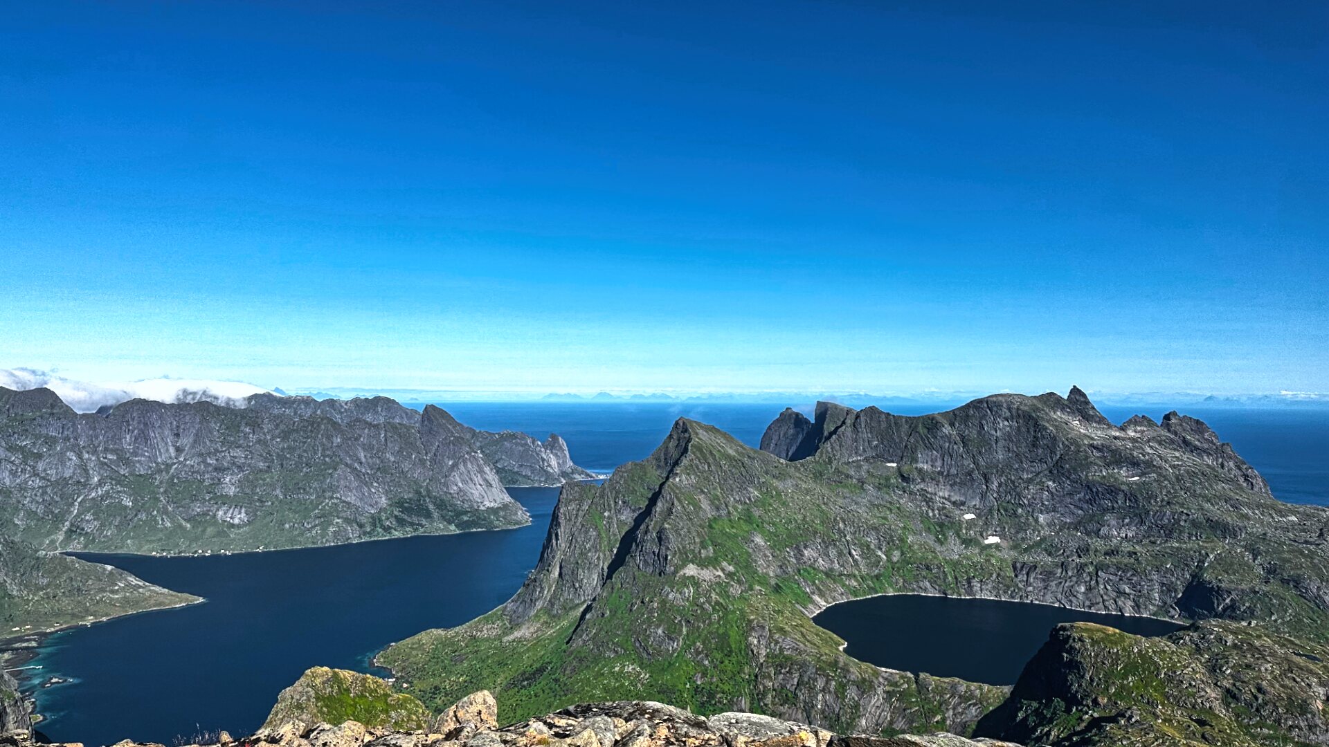Lofoti so poznani po izjemni pokrajini, dramatičnih vrhovih in tradiciji ribolova. Špičaste gore se kakor zid strmo dvigajo iz morja do višine 1000 m, a ko se jim približamo, nas očarajo z razčlenjeno, raznoliko obalo, ljubkimi vasicami in neverjetno scenografijo. Divjino prvobitne narave je čutiti na vsakem koraku. Lofoti ležijo znotraj polarnega kroga, a imajo za to zemljepisno širino nenavadno milo klimo, zato se lahko veselite sončenja na samotnih peščenih plažah z mogočno gorato kuliso v ozadju. A tiste res najlepše plaže najdejo le tisti, ki jim ni težko stopati po neuhojenih poteh čez hribovito pokrajino. Mi bomo vsekakor sledili tem redko prehojenim potem, stran od turističnega vrveža. Vrhovi, ki jih bomo obiskali, ponujajo razkošne razglede na neštete fjorde, okoliške gore in idilične vasice. Domačini pravijo, da na Lofotih slabega razgleda ni, razen ko so vrhovi v oblakih in tako ali tako ne vidiš ničesar.